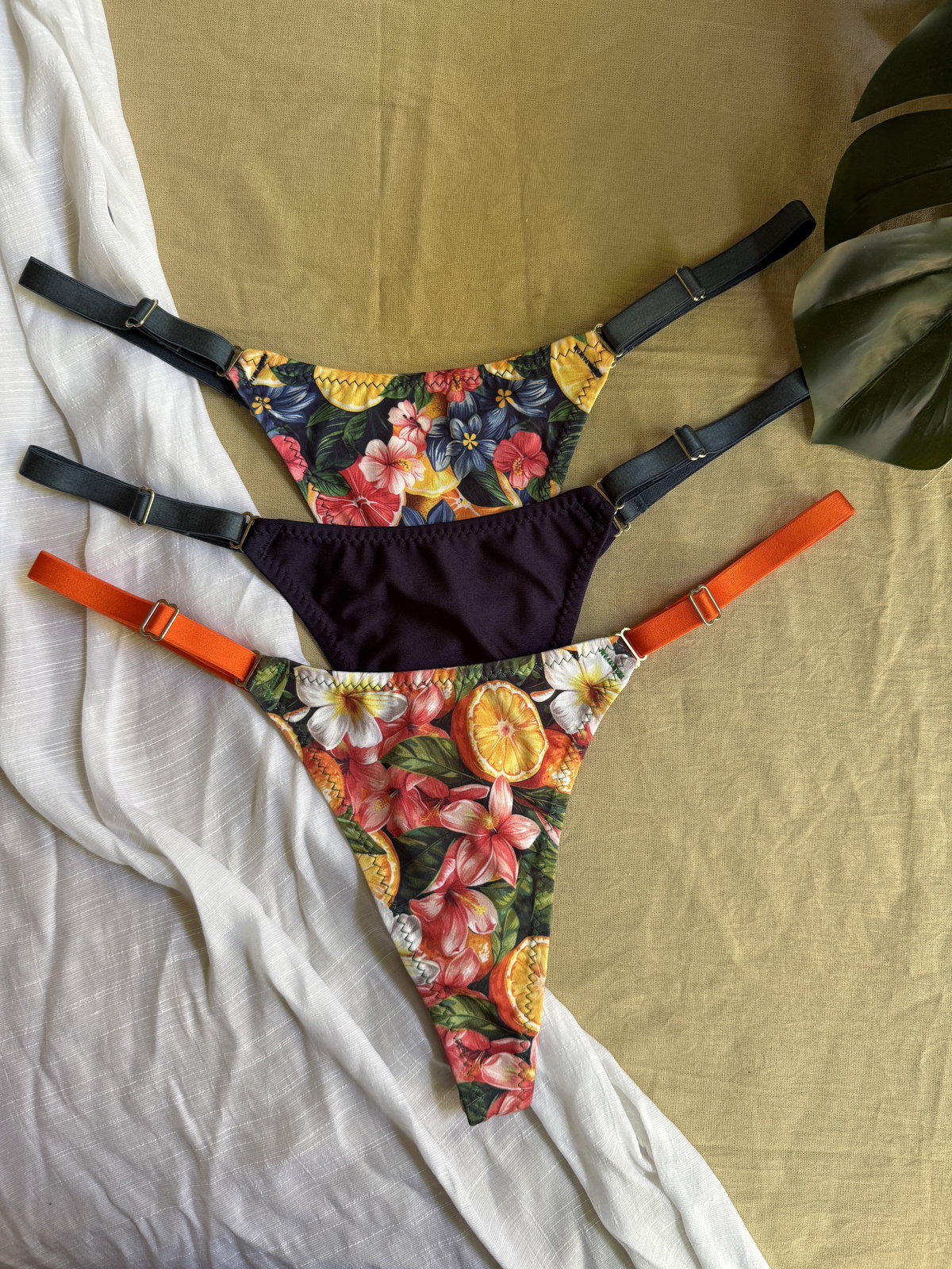 Docena de bombis less regulables tiro alto confeccionadas en microfibra elastizada con breteles anchos.